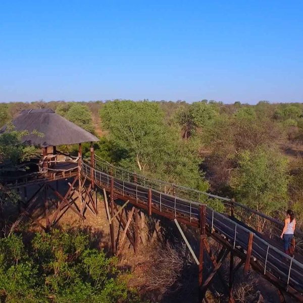 Succumb to bushveld luxury at Ezulwini Billy’s Lodge, a lodge built on the banks of a seasonal riverbed that brings in herds of grazing animals and their predatory counterparts right to the vicinity of the lodge. Located in the Olifants West Nature Reserve, Ezulwini Billy’s Lodge enjoys a pristine location in a private region of the Greater Kruger. One of Billy’s major drawcards is its raised wooden skywalk overlooking the bushveld and private waterhole.
